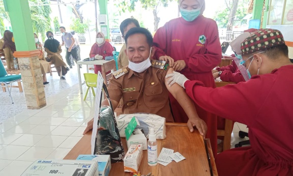 Selain Bupati Majene, nampak beberapa pimpinan OPD beserta staf mengikuti vaksinasi di Puskesmas Totoli. (Ih)