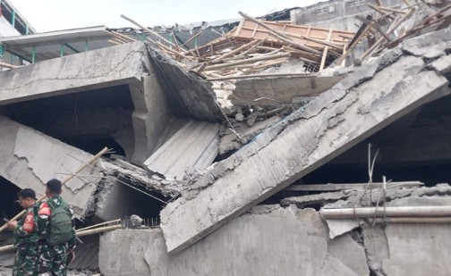 Dalam peristiwa itu, belasan santri dilaporkan tertimbun. Reruntuhan bangunan