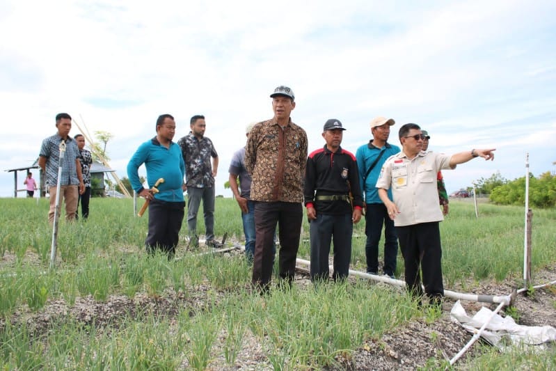Bupati majene, Andi Achmad Syukri bersama dengan petani mengunjungi Lokasi penanaman Bawang yang merupakan Lokasi kunjungan Kerja Wakil Menteri pertanian RI