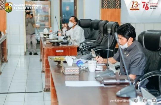 POINSEMBILAN.COM-Toraja Utara– Dewan Perwakilan Rakyat Daerah (DPRD) Kabupaten Toraja Utara bersama Pemerintah Kabupaten Toraja Utara melaksanakan rapat terkait Posko penanganan Covid-19 di Kecamatan, Kegiatan itu dipusatkan di ruang sidang paripurna DPRD Kab. Toraja Utara (28/07/2021).