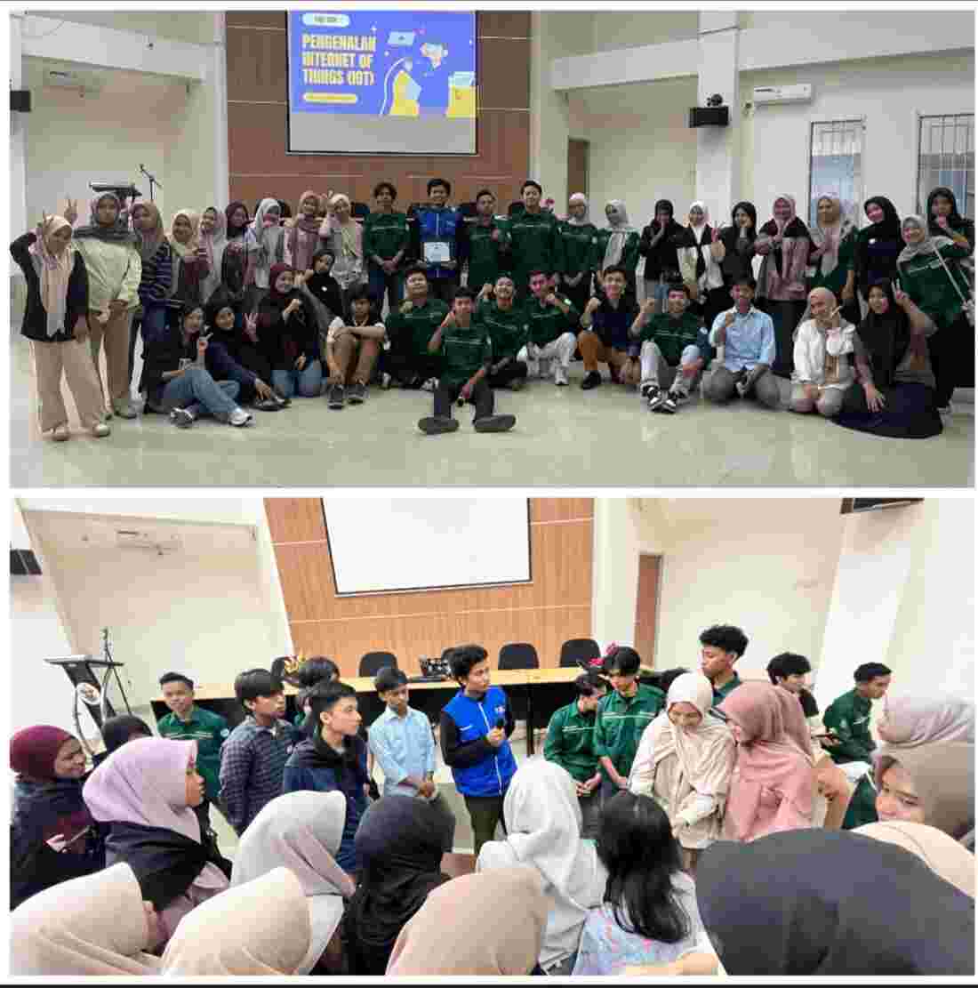 Kegiatan berlangsung secara interaktif dengan rangkaian agenda yang meliputi pre-test, penyampaian materi, sesi diskusi, praktik sederhana penggunaan sensor, hingga post-test sebagai bentuk evaluasi pemahaman peserta terhadap materi yang diberikan.