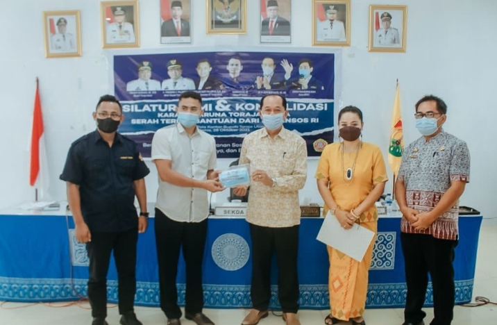 Dalam kegiatan ini dirangkaian dengan penyerahan bantuan dari kemensos RI yang di serahkan secara simbolis langsung oleh sekretaris daerah didampingi kepala dinas sosial dan ketua carataker TK Toraja Utara kepada perwakilan pengurus karang taruna.