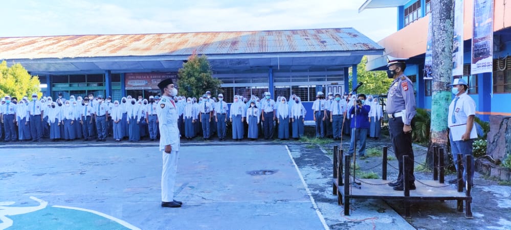 Kasat Lantas menjadi inspektur upacara di SMP Negeri 9 Parepare Jalan Lahalede, Kecamatan Soreang, Kota Parepare, Senin (13/3/2022).