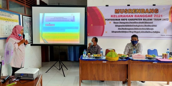 Hadir dalam kegiatan itu, camat Banggae Dr. Hj Atika S. Sos. MM, kabid Bapeda Andi Irma T Nilawati SP, Muh Yasib dan 21 peserta termasuk empat kepala lingkungan, tokoh agama dan tokoh masyarakat. Kegiatan ini dilaksanakan dengan menerapkan protokol kesehatan.
