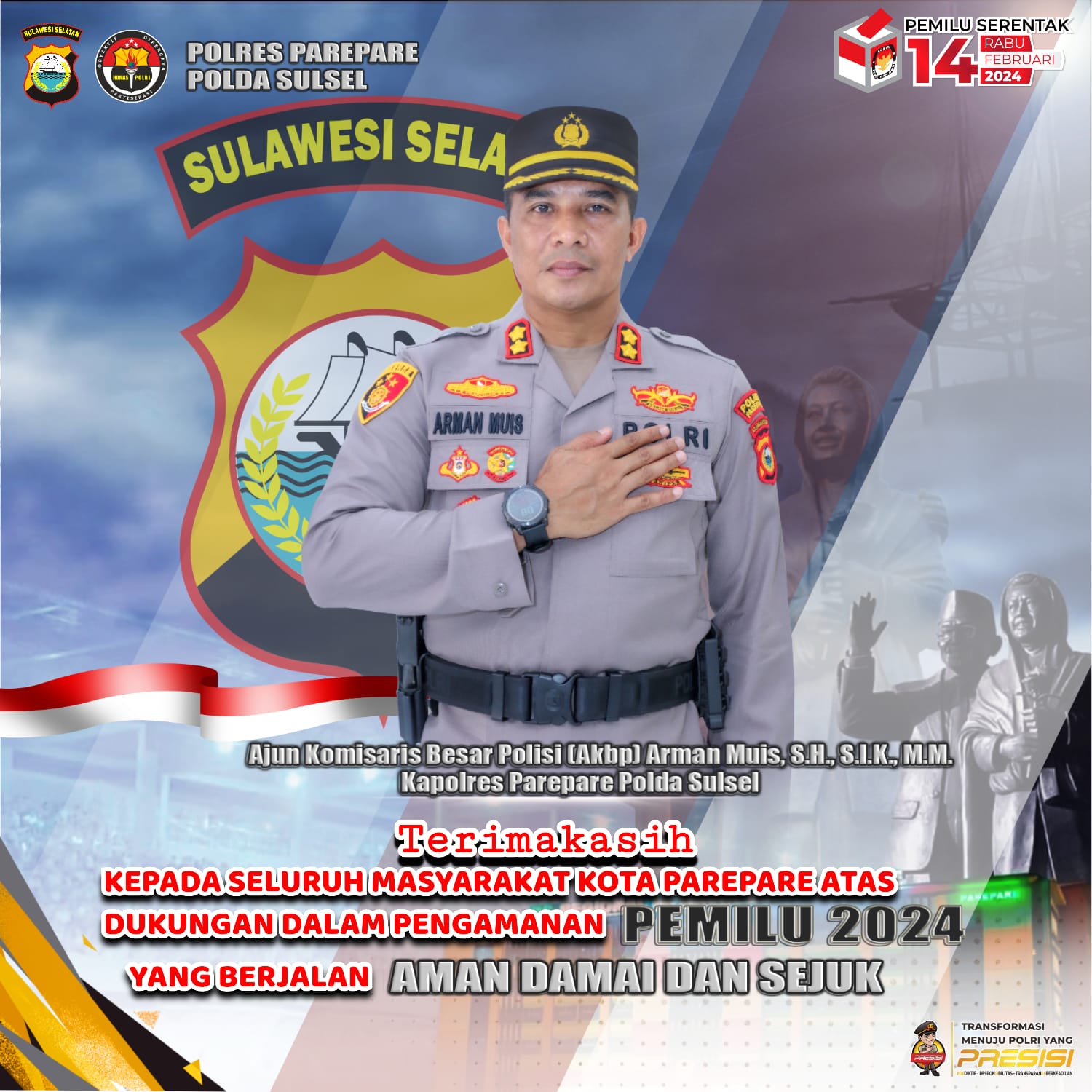 “Alhamdulillah Terimakasih kepada seluruh masyarakat kota Parepare atas dukungan dalam pengamanan pemilu 2024 yang berjalan aman dan damai, “ Pungkasnya