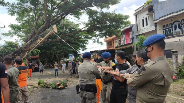 Setelah berhasil mengevakuasi pohon tumbang dan membebaskan truk yang terjebak oleh pohon tersebut, tim SAR gabungan juga melakukan penebangan terhadap 4 pohon Trembesi disekitar area kejadian. ” Agar kejadian serupa tidak terulang kembali kami bersama tim gabungan juga menebang 4 pohon lapuk disekitar lokasi kejadian, hal ini juga kami lakukan sebagai langkah pencegahan agar pohon-pohon yang lapuk ini tidak membahayakan keselamatan masyarakat,” tambah Perwira menengah berpangkat satu bunga ini.