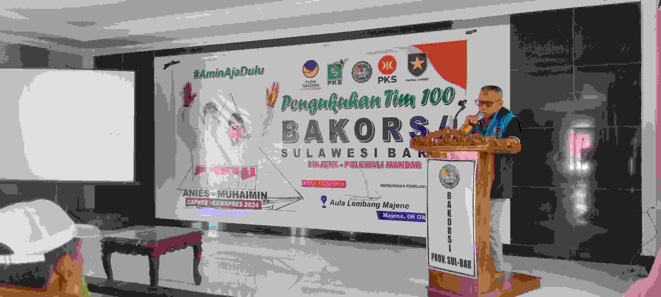 MAJENE-Forum Komunikasi (Forkom) Antar Jaringan Relawan Anies Baswedan-Muhaimin [AMIN] Capres dan Cawapres mengukuhkan Tim 100 Badan Koordinasi Saksi (Bakorsi) Sulbar di Kabupaten Majene dan Kabupaten Polewali Mandar.