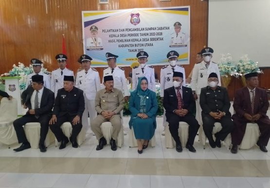 BUTON UTARA, Gelaran pemilihan kepala desa serentak 39 desa di kabupaten Buton Utara pada Juni 2022 lalu, hari ini, Selasa, 26 Juli 2022 resmi dilantik Bupati Buton Utara Dr H Ridwan Zakatiah MSi, di aula kantor Badan Perencanaan Pembangunan Daerah ( Bappeda) Buton Utara.